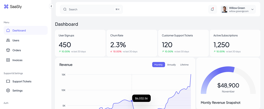 Use a modern, flexible dashboard template that grows with your product.